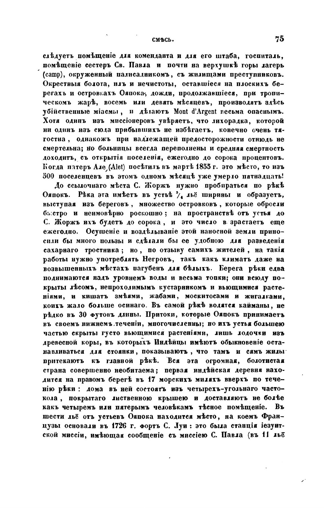шести льё отъ устьевъ Ояпока находитея мВсто, на коемъ Фран—