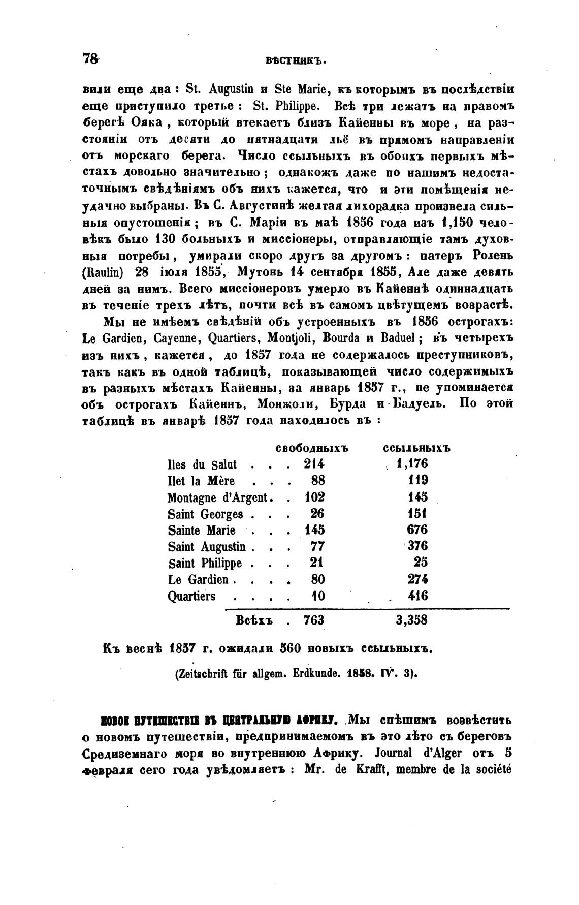 въ разныхъ Астахъ Кайенны, за январь 1857 г., не упоминаетса