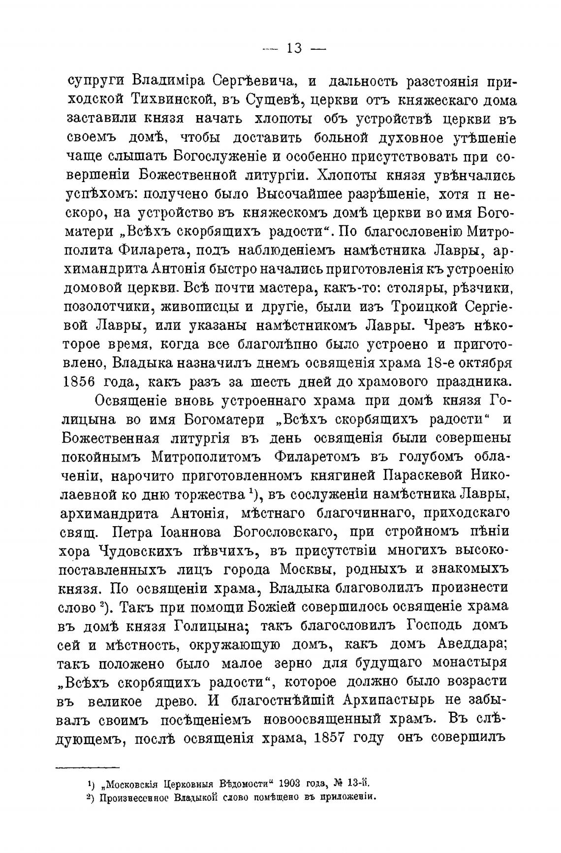 1) „Mock0Bcki3 Церковныя В%домостии 1903 года, 13-ti.