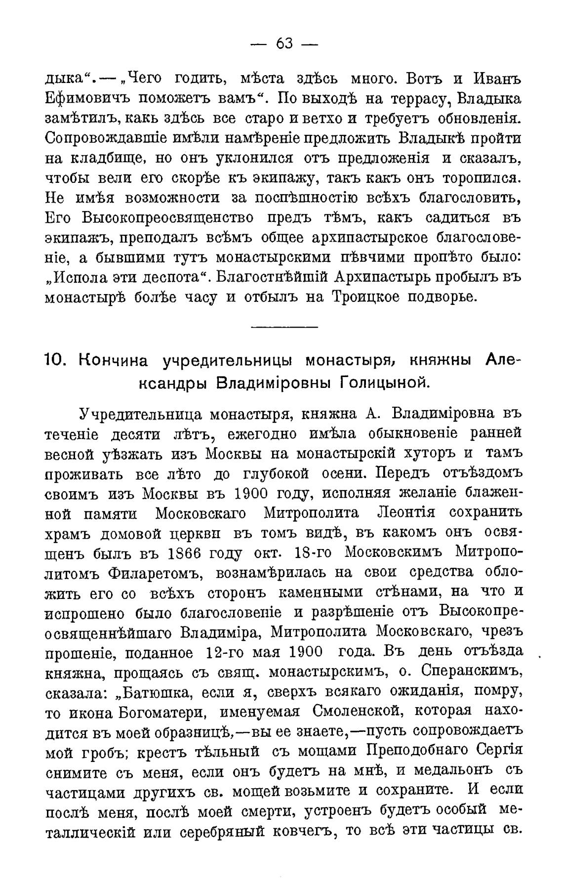 10. Кончина учредительницы монастыря, княжны Але-