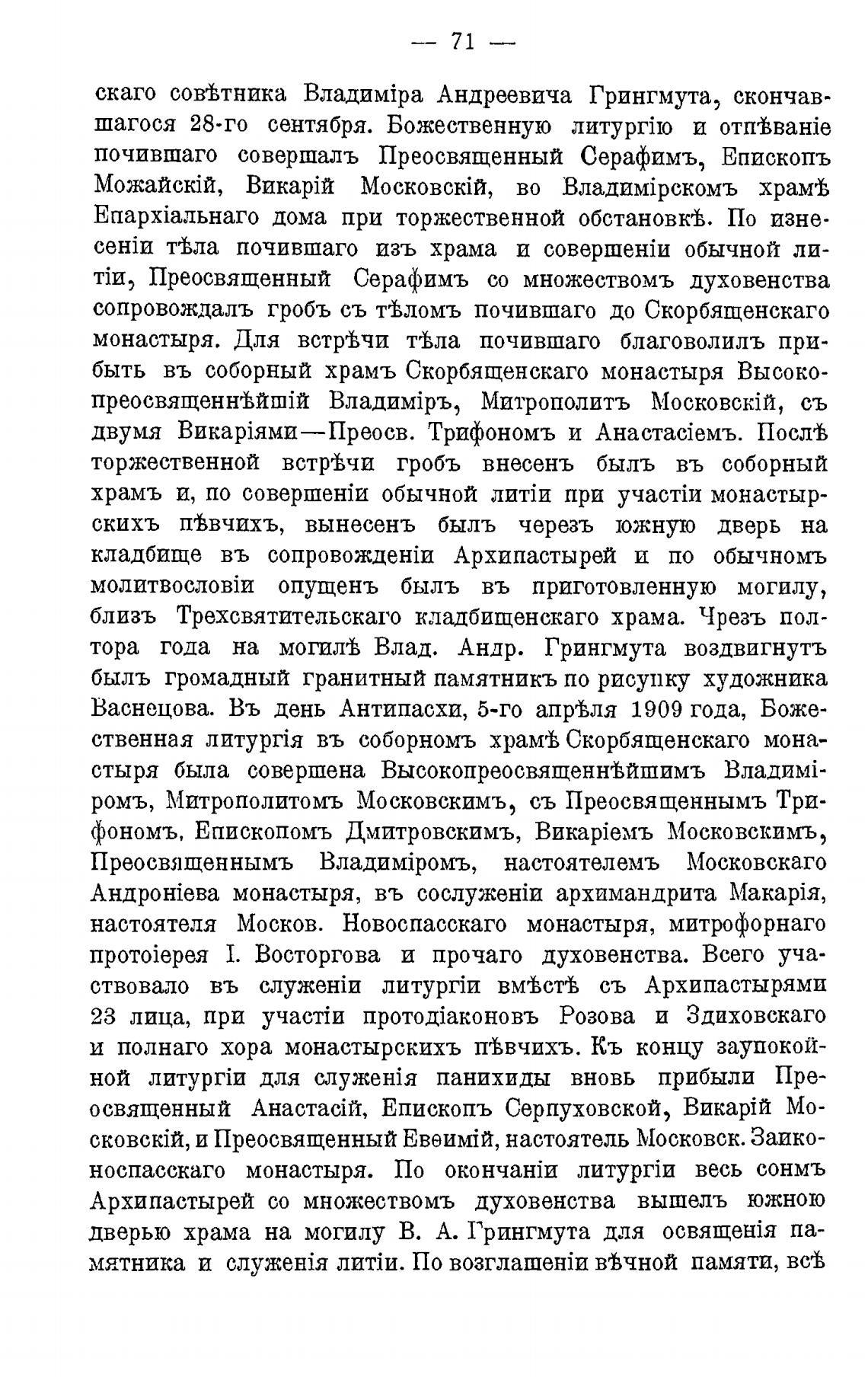 тора года на могил± Влад. Андр. Грингмута воздвигнуть