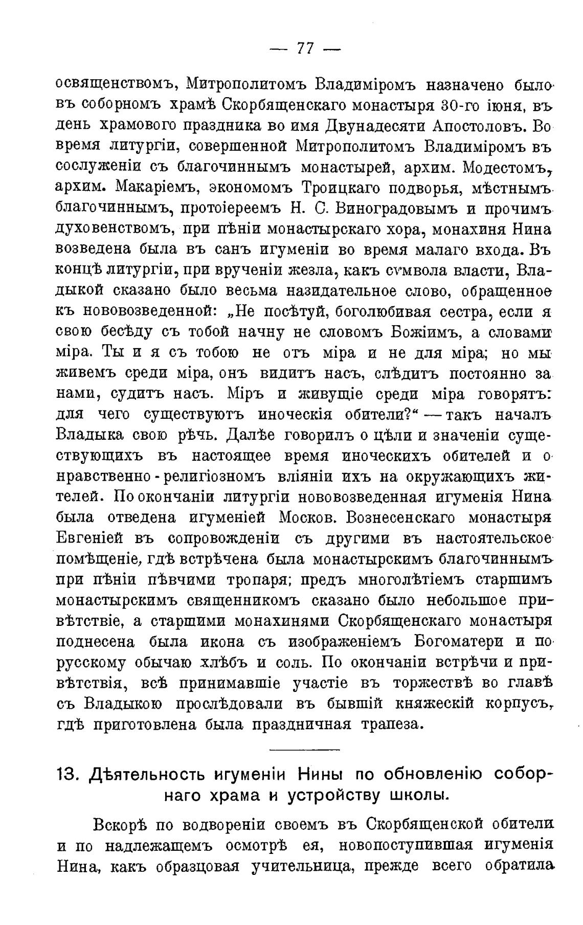B±TcTBie, а старшими монахинями Скорбященскаго монастыря