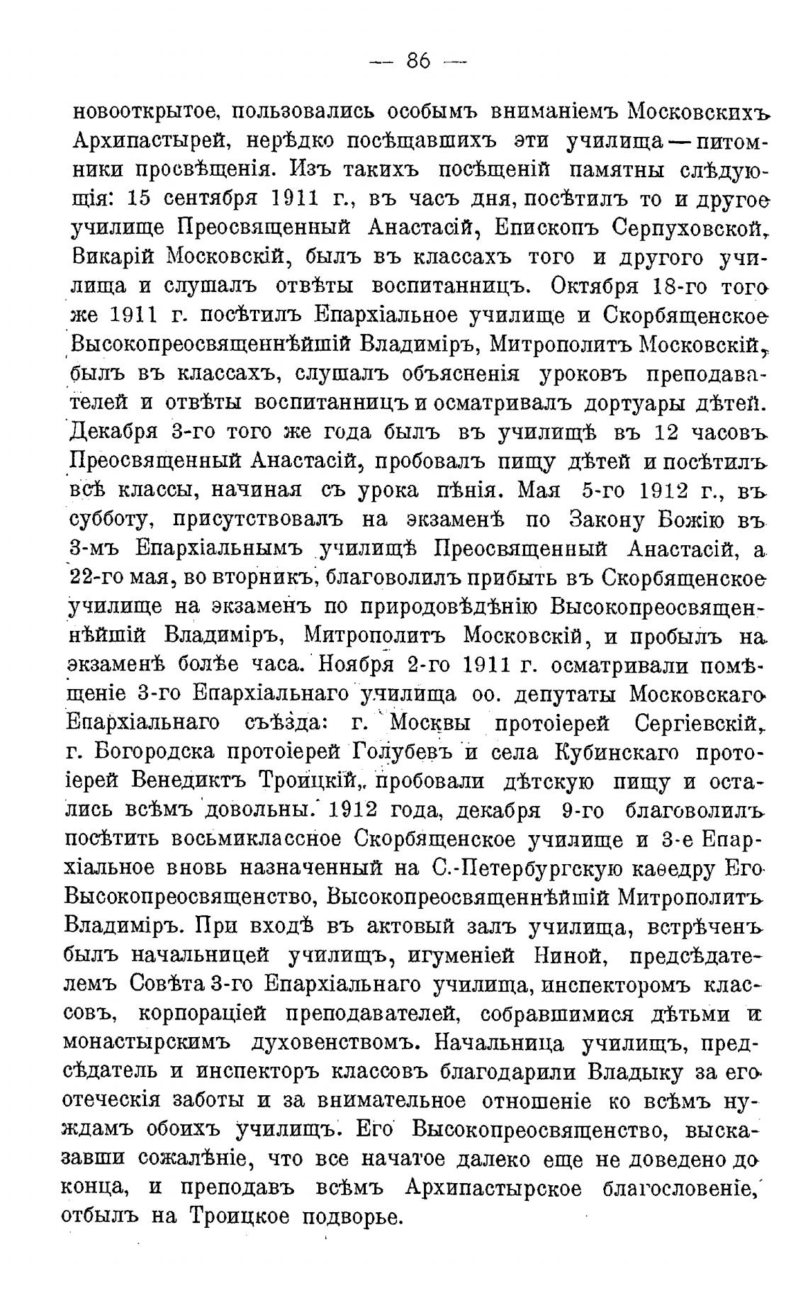 посТтить восьмиклассное Скорбященское училище и 3-е Епар-