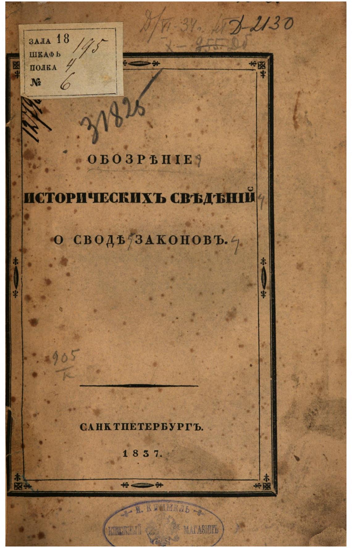 историчвскихъ свевдт;шй