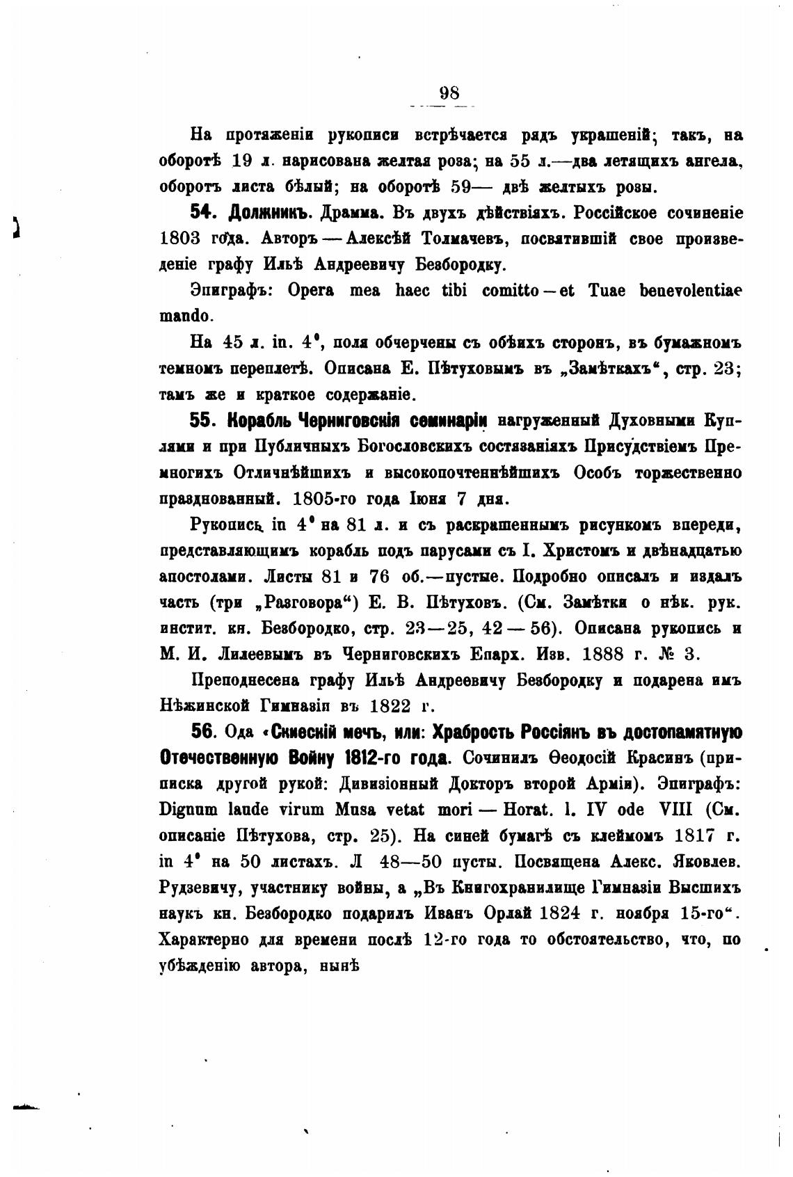 инстит. кн. Безбородко, стр. 23—25, 42 — 56). Описана рукопись и