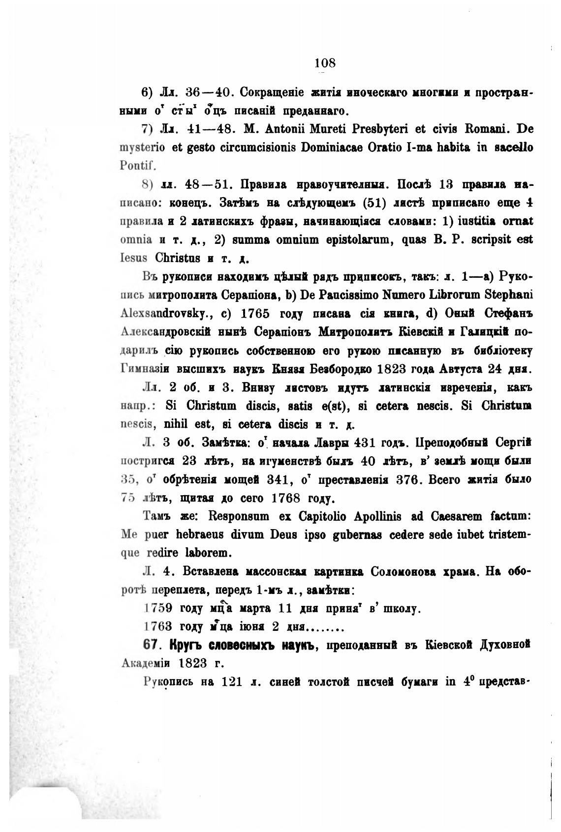 Alexsandrovsky., с) 1765 году писана cia книга, d) Оный Стефанъ