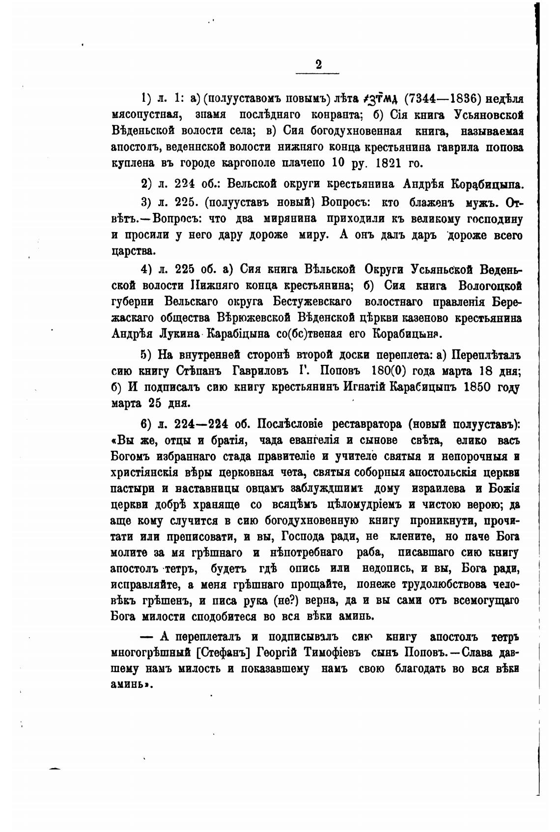 Вђденьской волости села; в) Сия богодухновенная книга, называемая