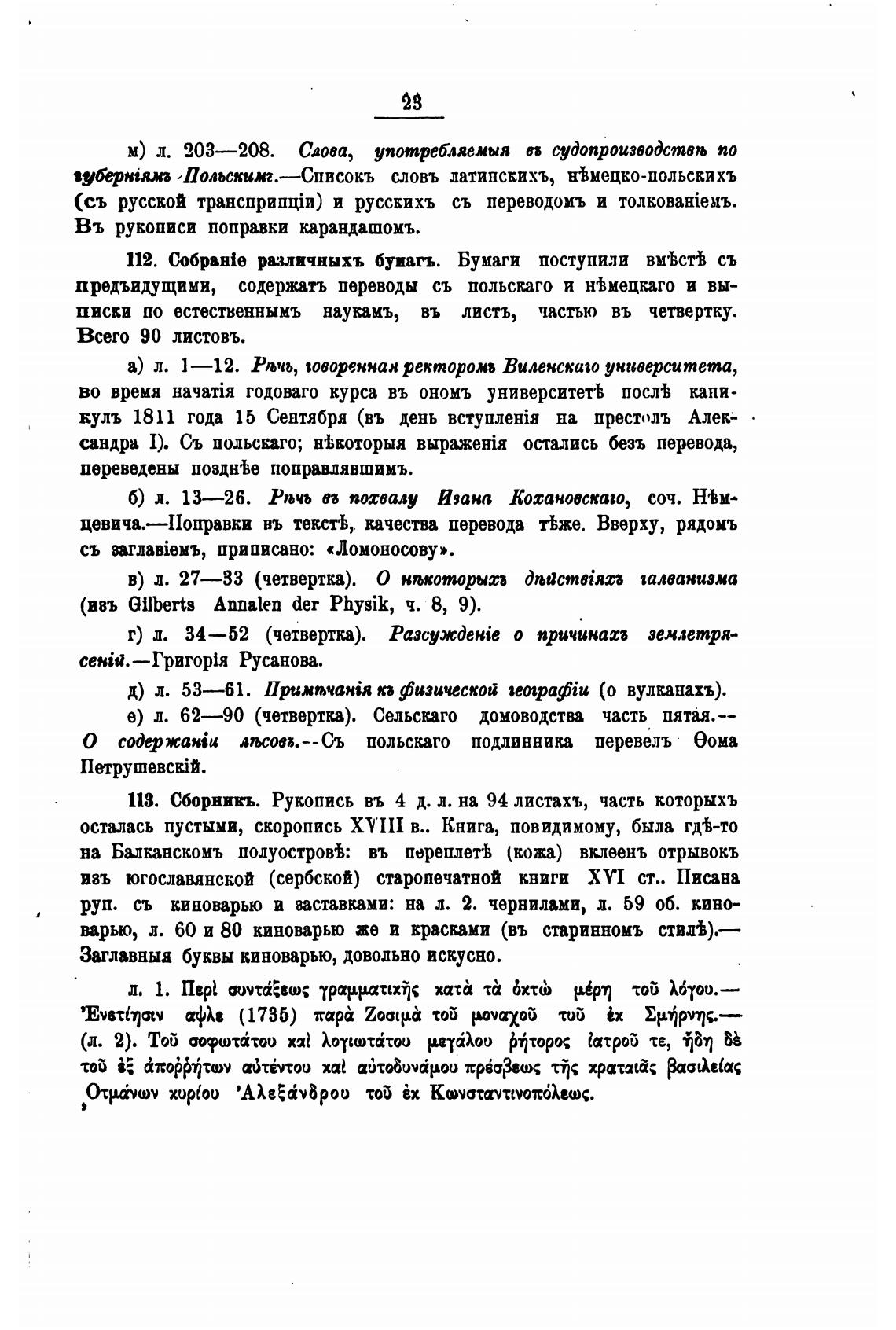 113. Сборникь. Рукопись въ 4 д. л. на 94 листахъ, часть которыхъ