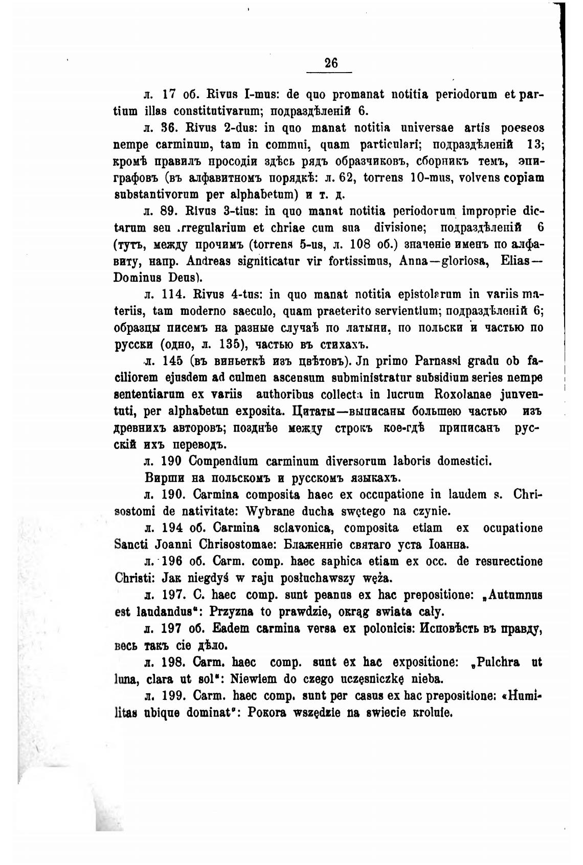 русски (одно, л. 135), частью въ стихахъ.