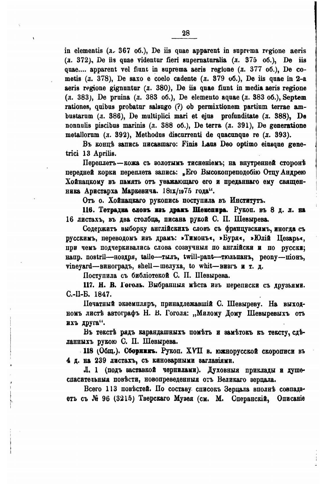 ланныхъ рукою С. П. Шевырева.