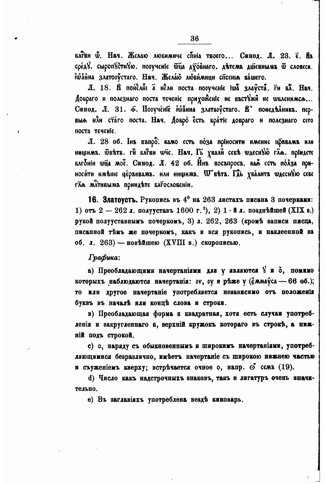 16. Златоусты Рукопись въ 40 на 263 листахъ писана З почерками: