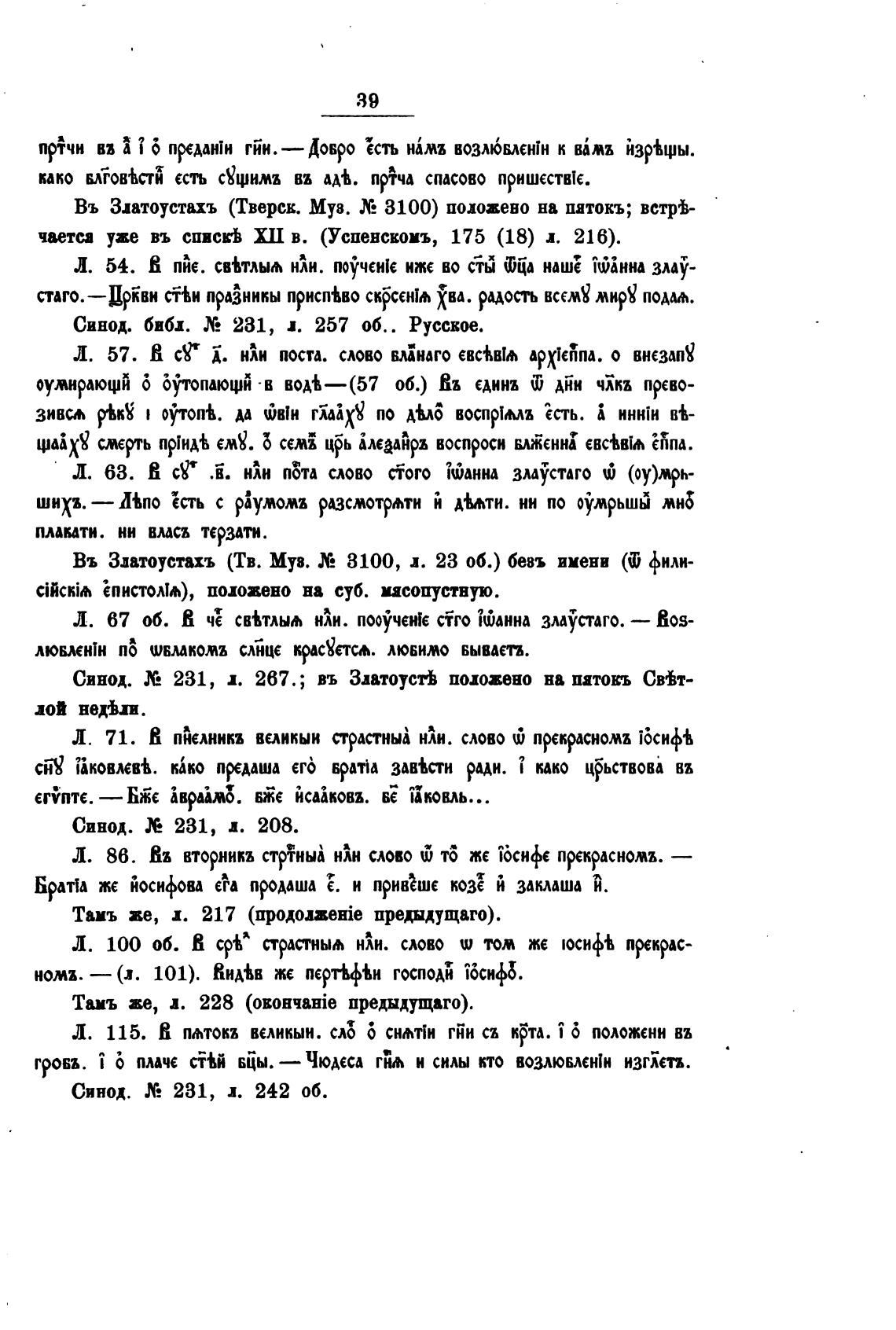Въ Златоустахъ (Тв. Муз. Х: 3100, л. 23 об.) безъ имени (Ш фили-