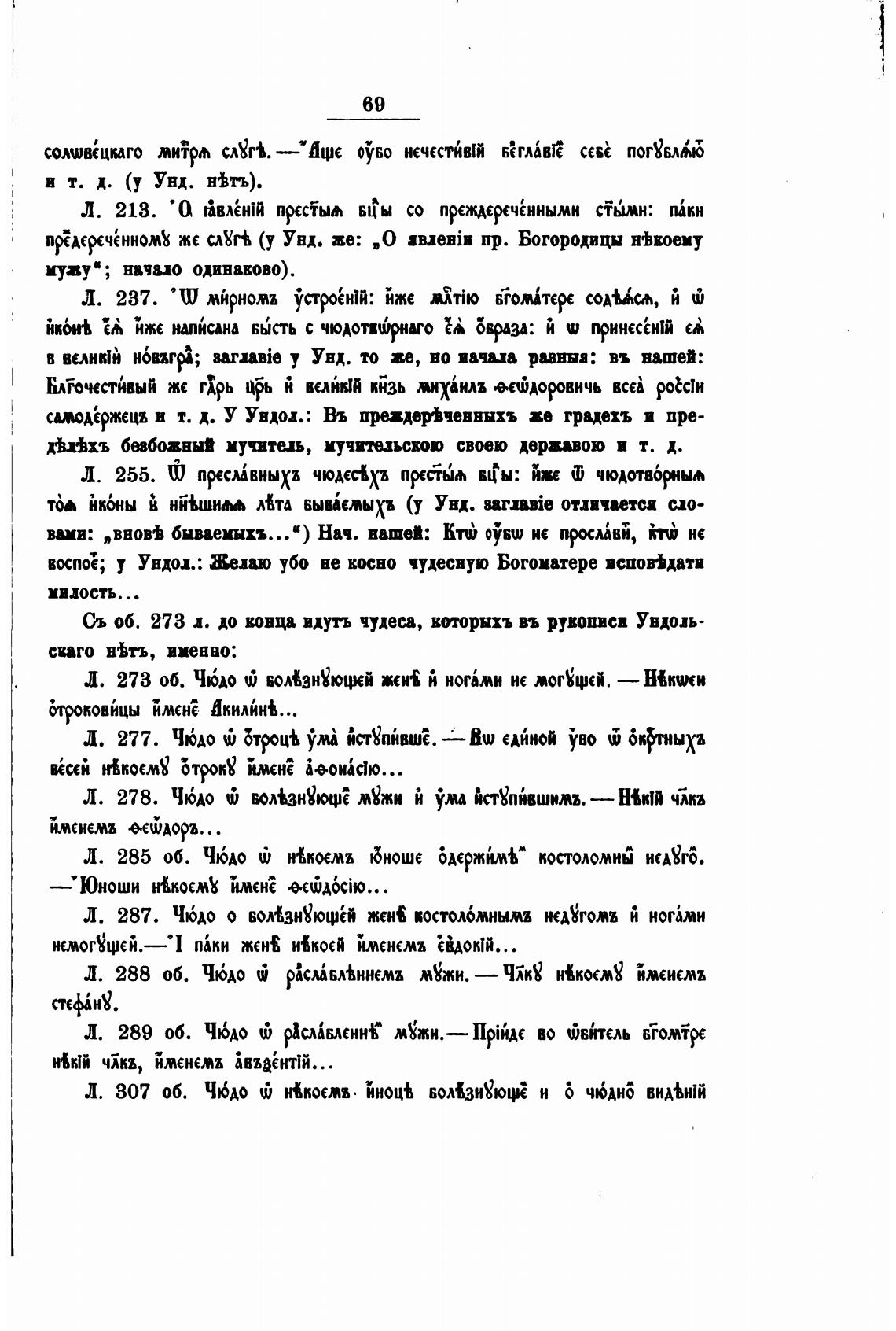 Съ об. 273 д. до конца идут чудеса, которыхъ вт рукописи Увдоль-