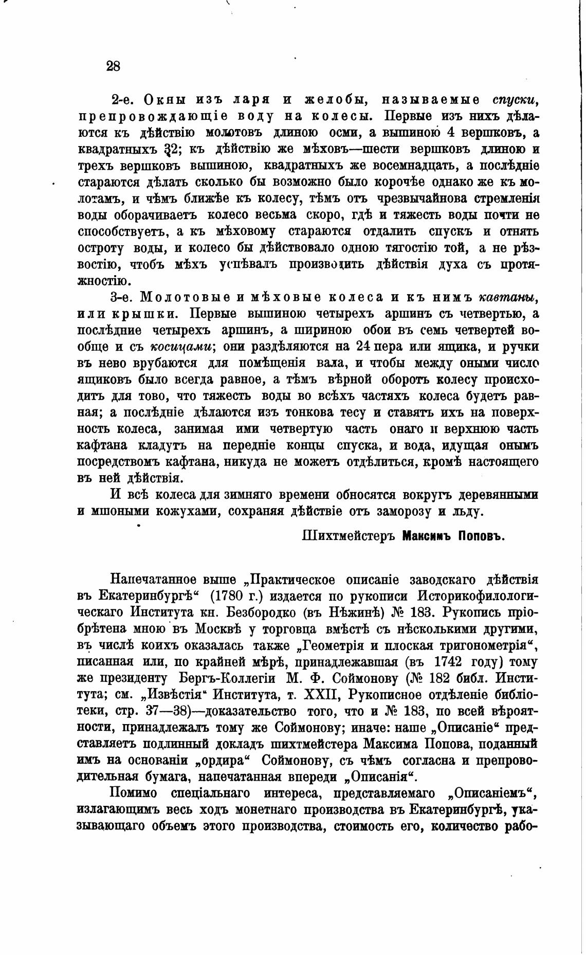 ставляетъ подлинный докладъ шихтмейстера Максима Попова, поданный
