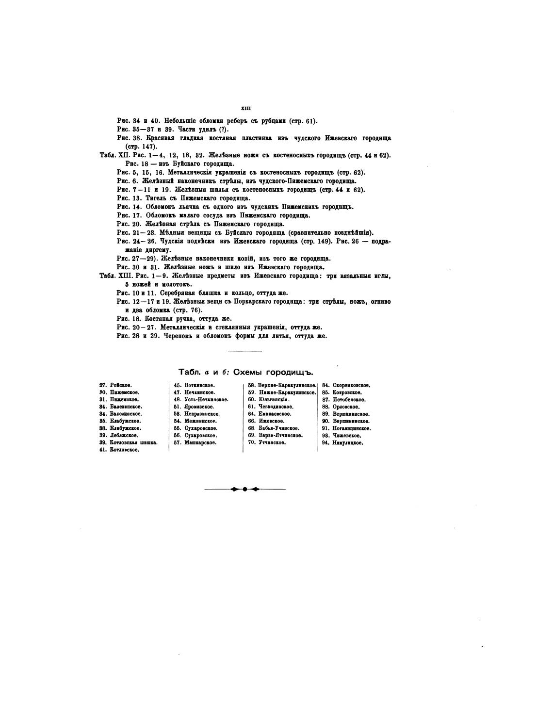 Табл. ХШ. Ряс. 1—9. Жемвные предметы взъ Ижевскаго гомнща: три вавиьнна иглы,