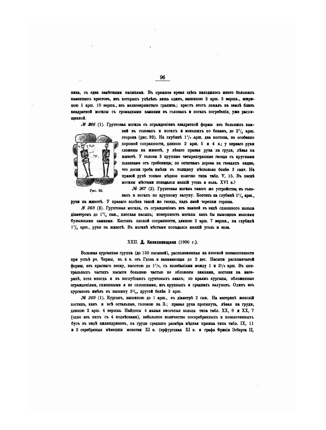 длиною 2 арш. 4 иршка. Найдены 4 ииыя височных кодьда типа табл. ХХ, 8 и Ц 7