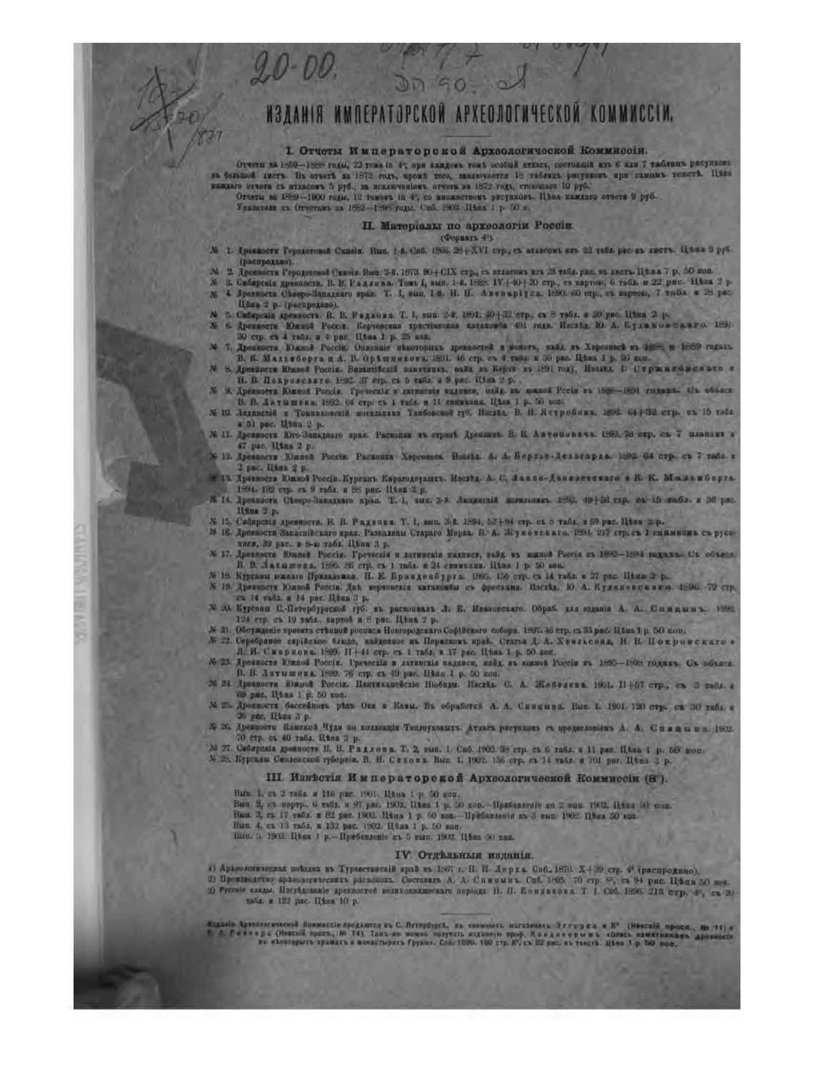 Т. Отче•гы Императо р с Археодогнчоекой Коммиеот.