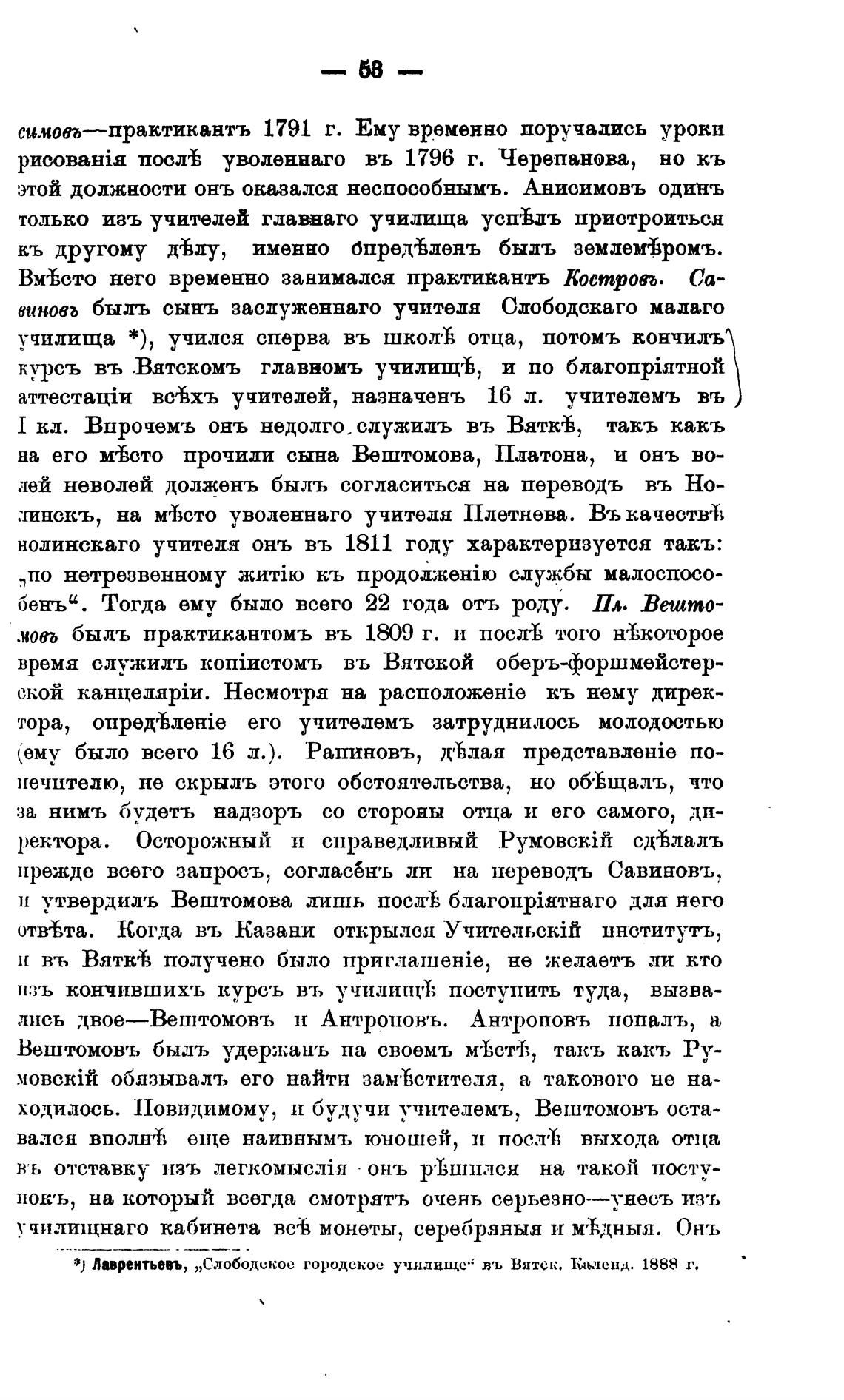 Лаврентьевъ, „Слободское городское училище“ въ Вятек. Каъ.тенд. 1888 г.
