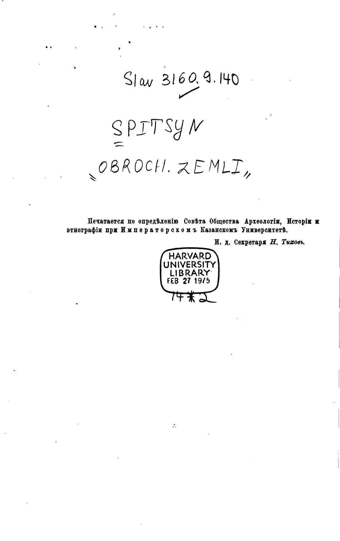 при И е р а т о р с Е о м ъ Казансвомъ Университет).