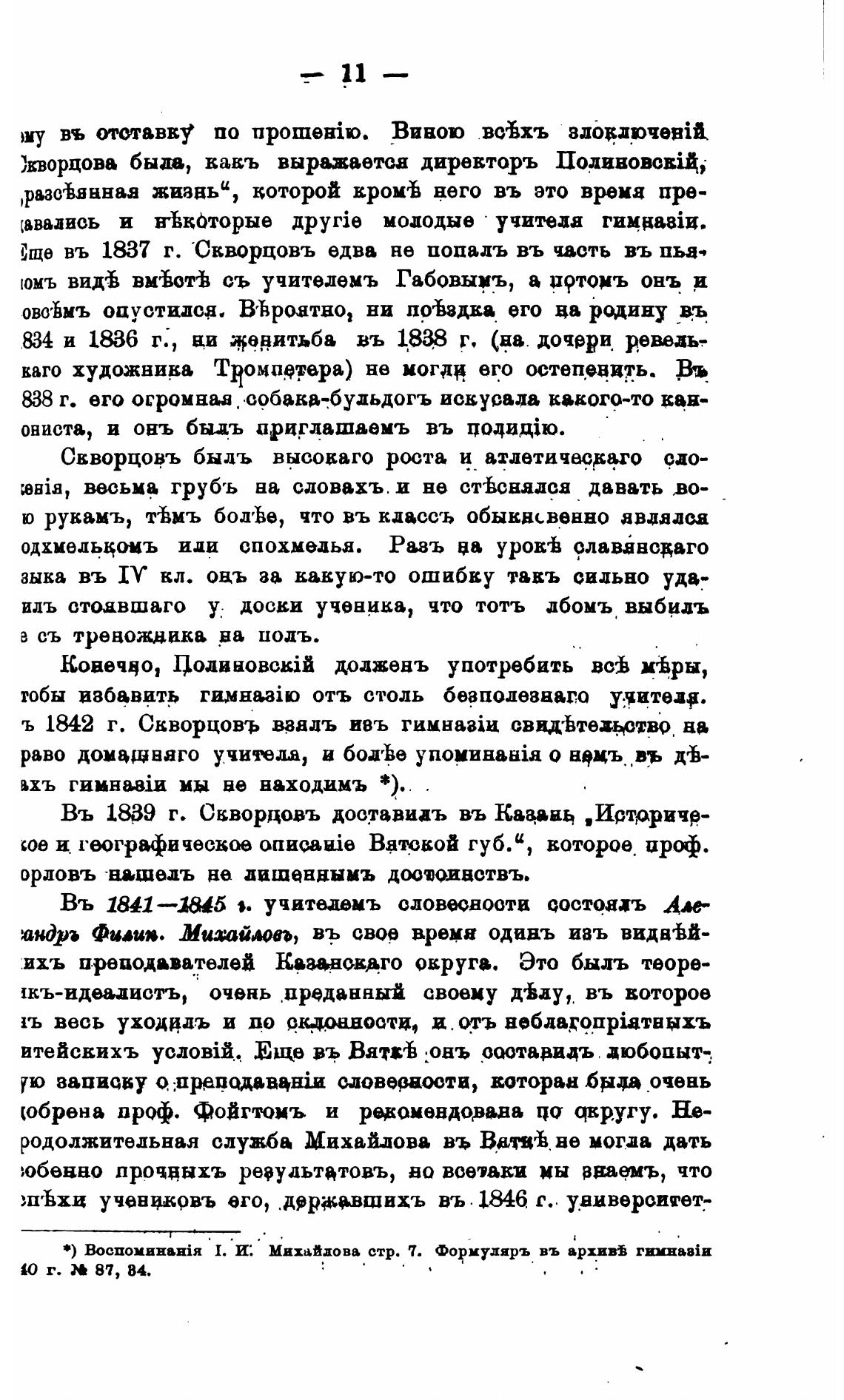 ъ 1842 г. Скворцовъ взадъ ивъ свид•Ьтехьство. на