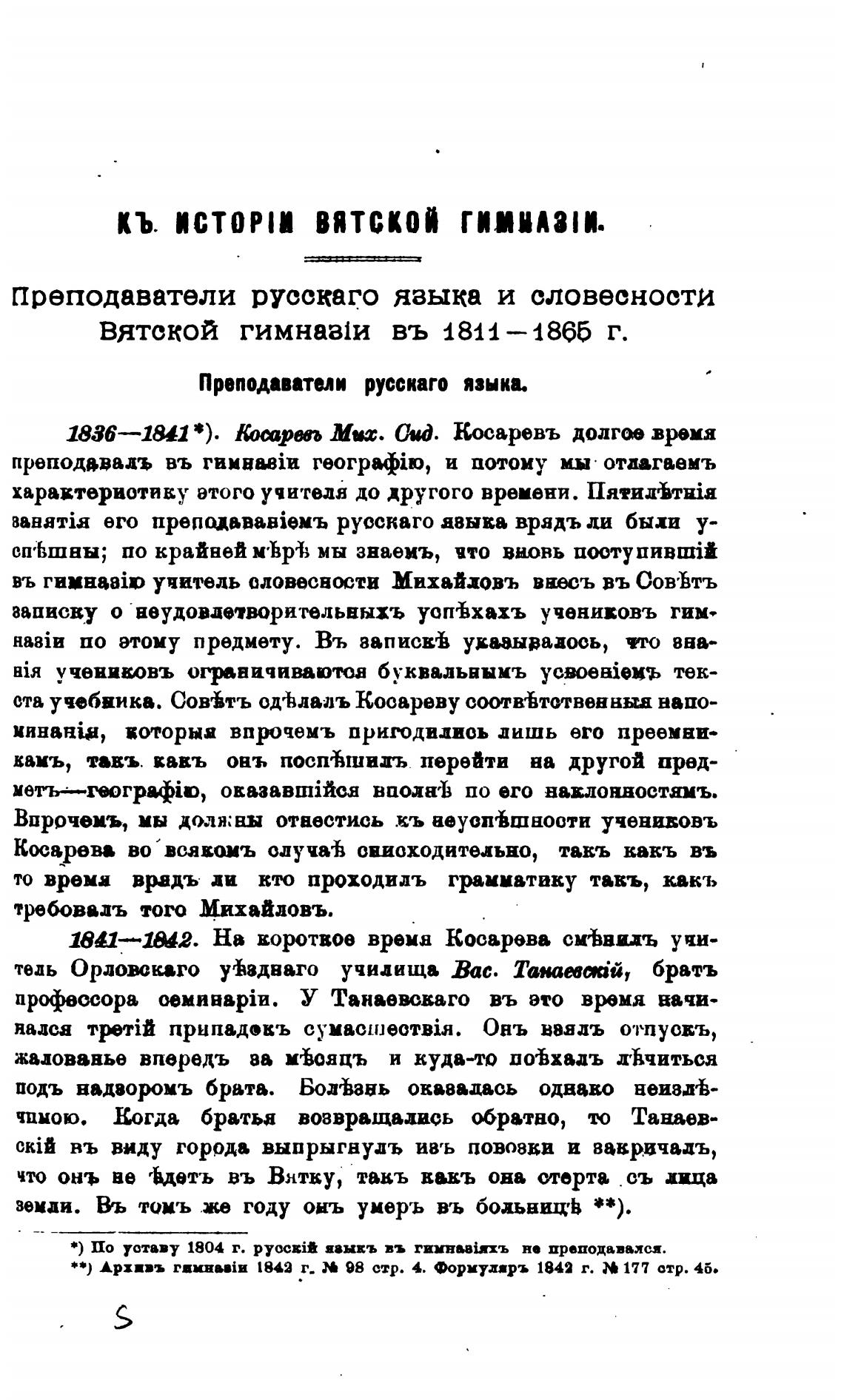**) Архпъ 1842 г- 98 стр. 4. формуларъ 1842 г. 177 отр. 46.
