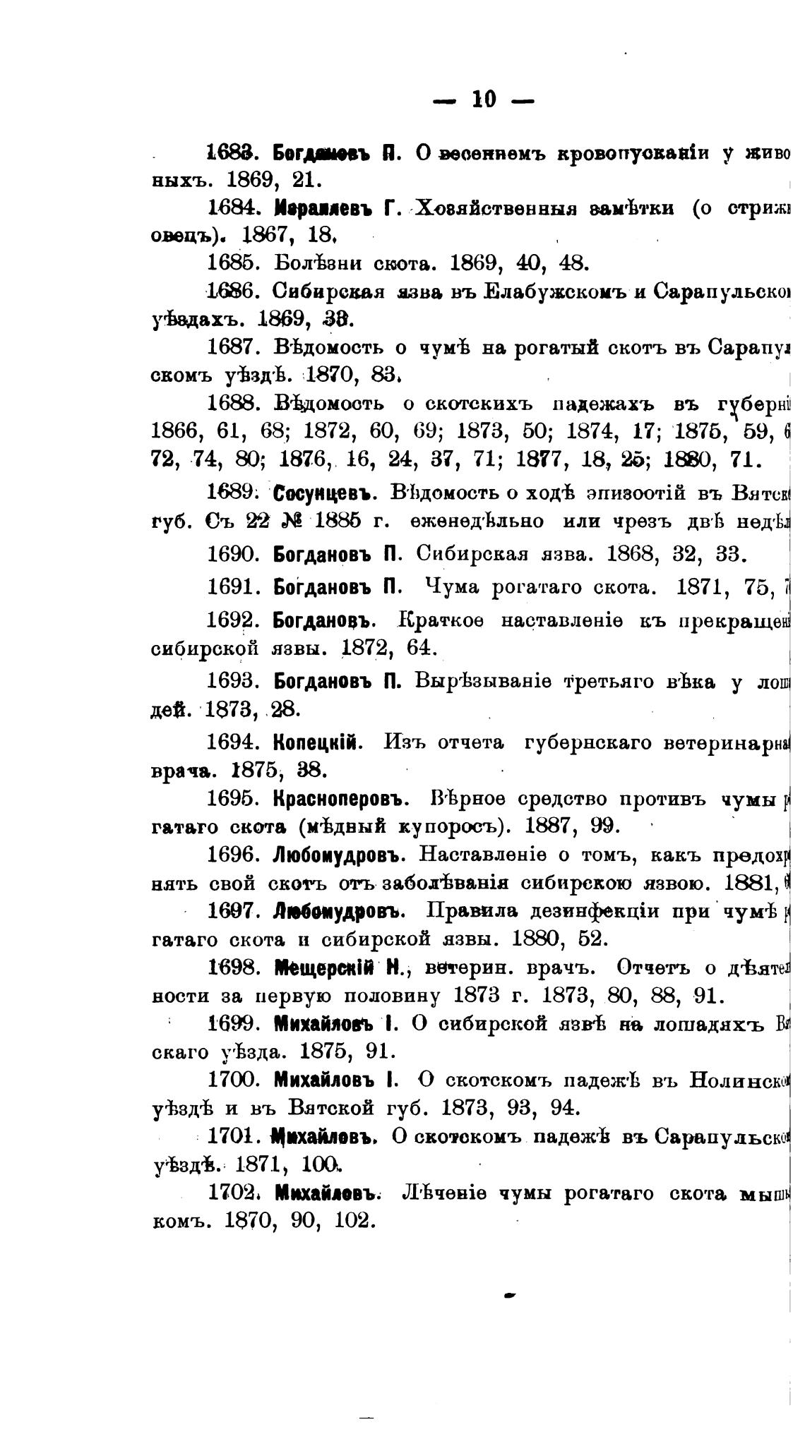 1690. Богдановъ П. Сибирская язва. 1868, 32, 33.