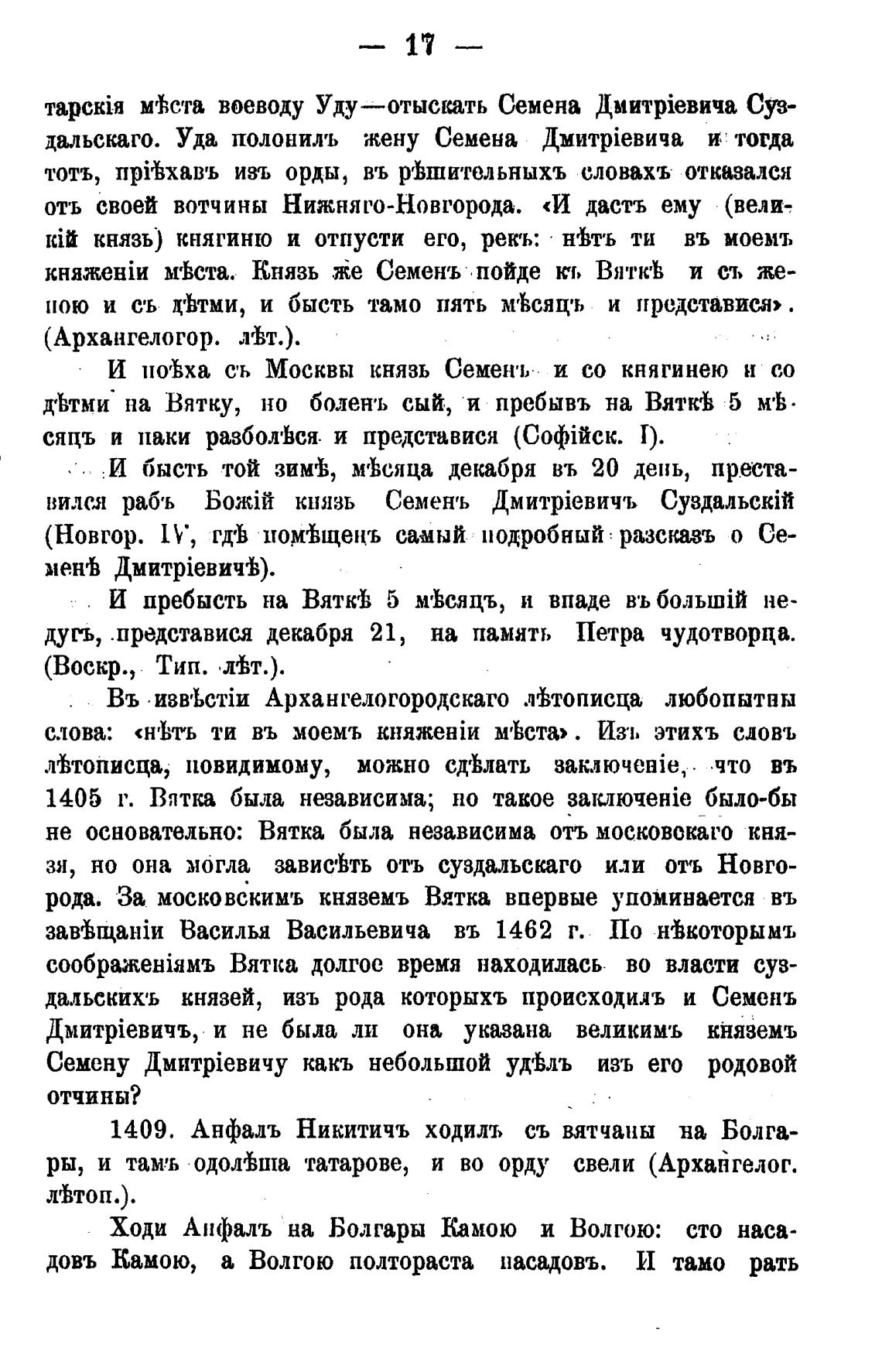 рода. За московскимъ княземъ Вятка впервые упоминается въ