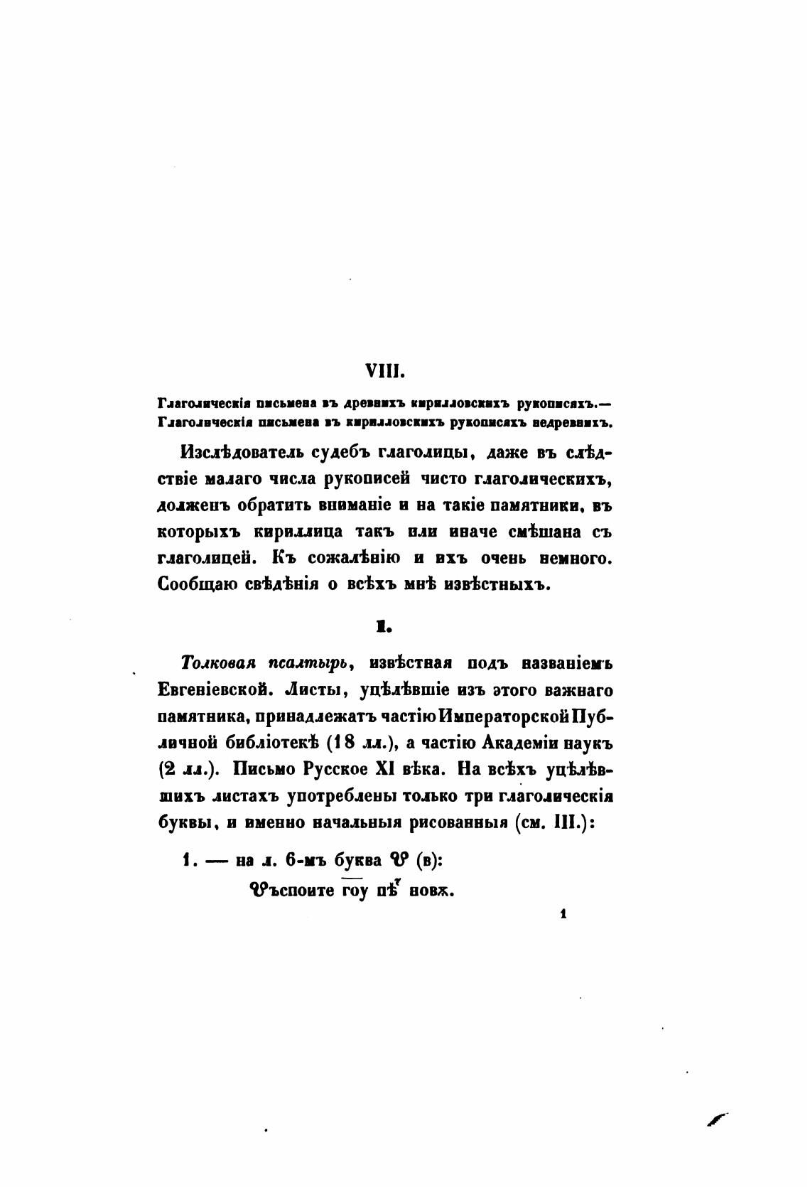 CTBie малаго числа рукописей чисто глаголическихъ,