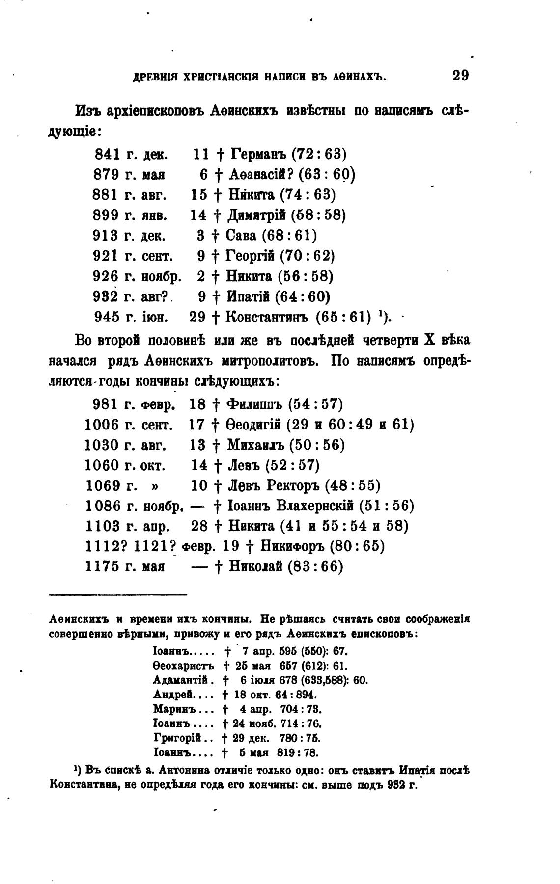 совершенно в•Врными, привожу и его рядъ Аеинсквхъ епископовъ: