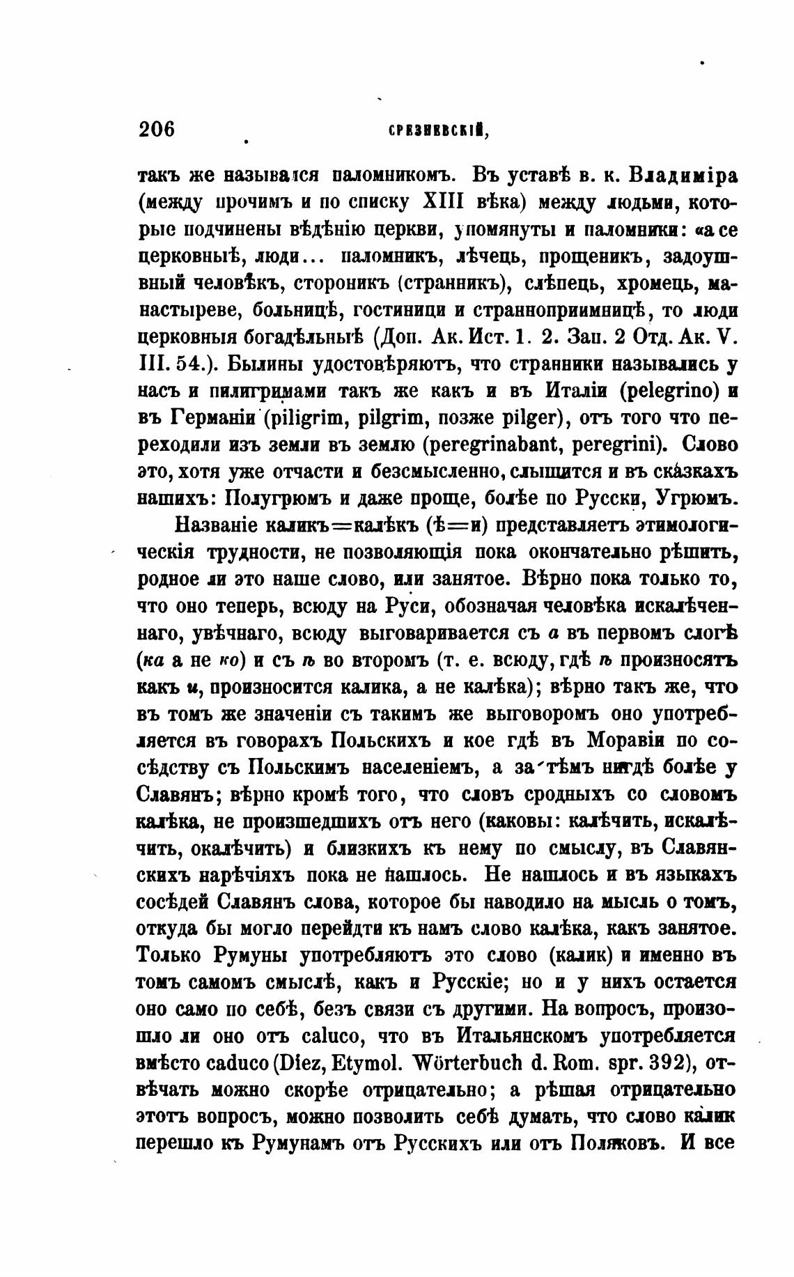 Только Румуны употребляють это слово (калик) и именно въ