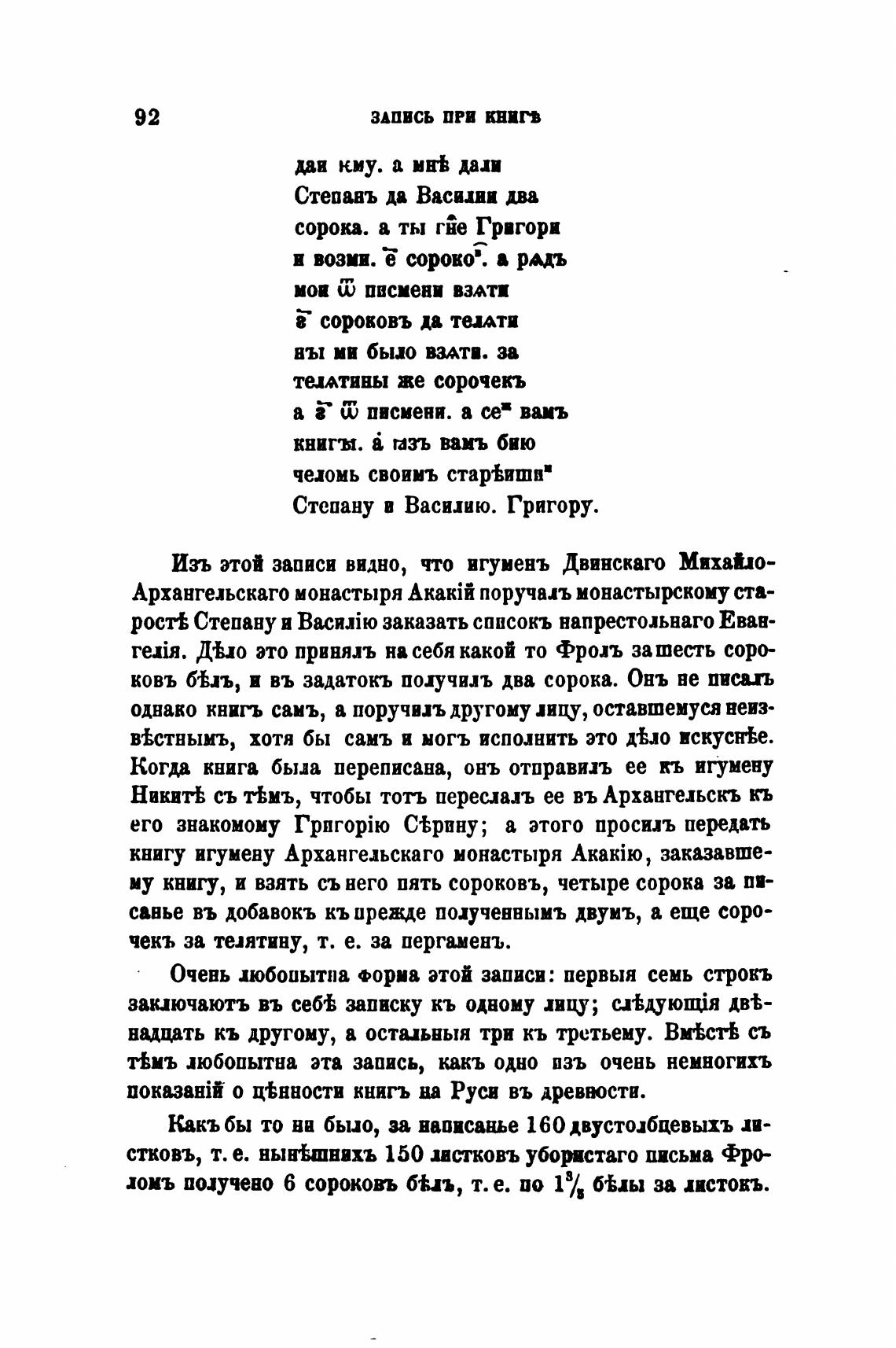 му книгу, и взять съ него пять сороковъ, четыре сорока за пи-