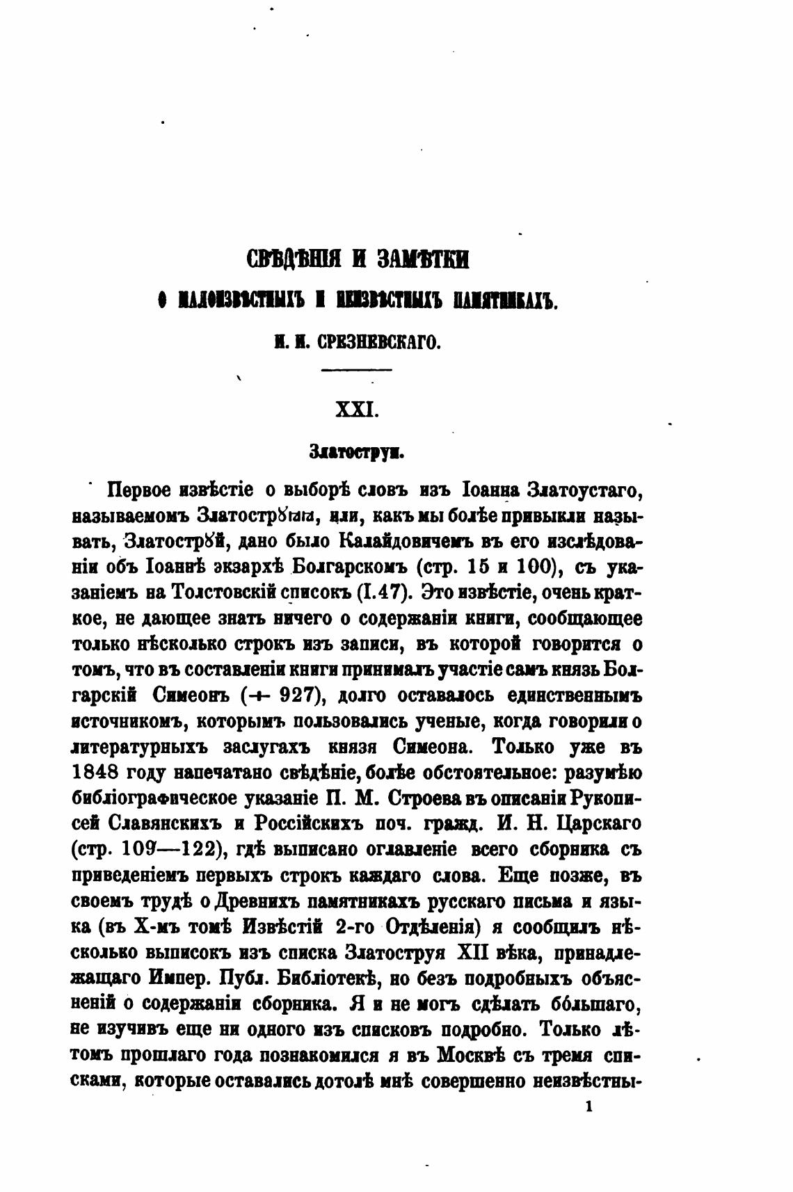 сколько выписокъ взъ списка Златоструя XII В'Ька, приваџе-