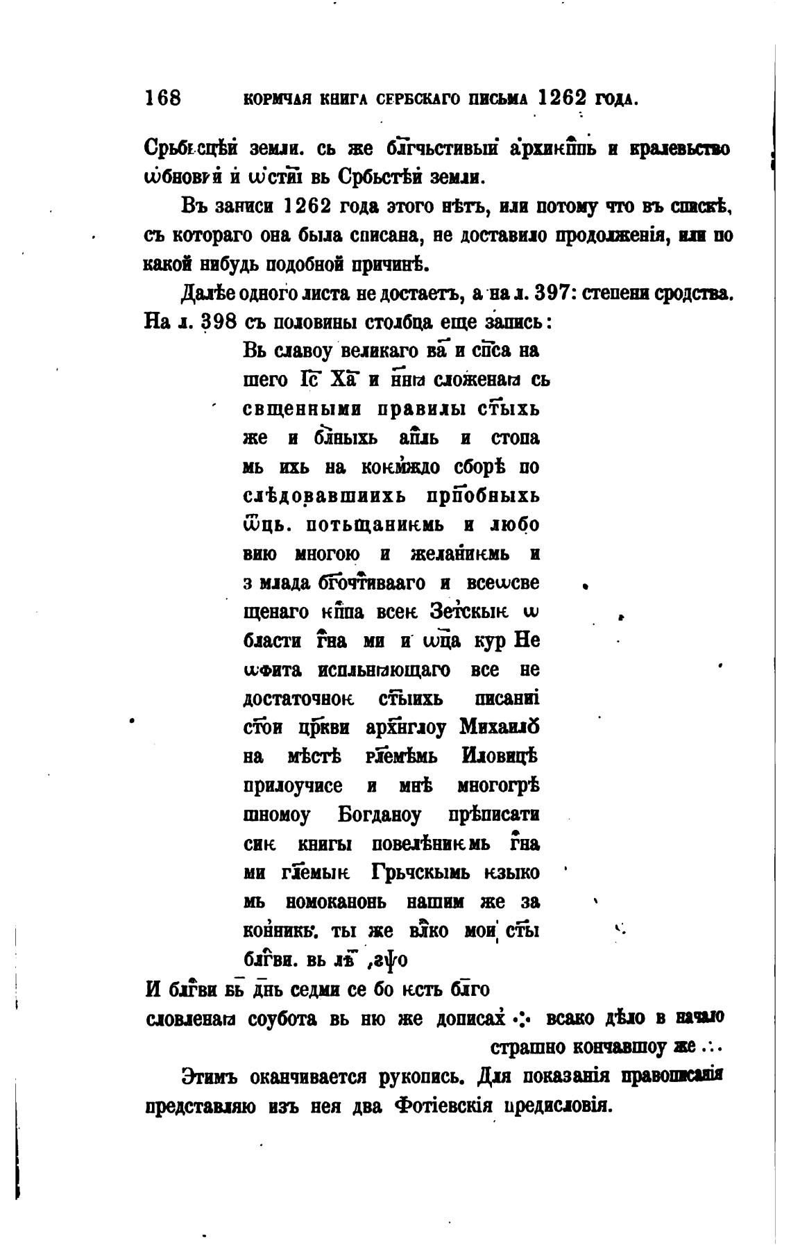 КОРМЧАЯ КНИГА СЕРБСКАГО письма 1262 ТДА.