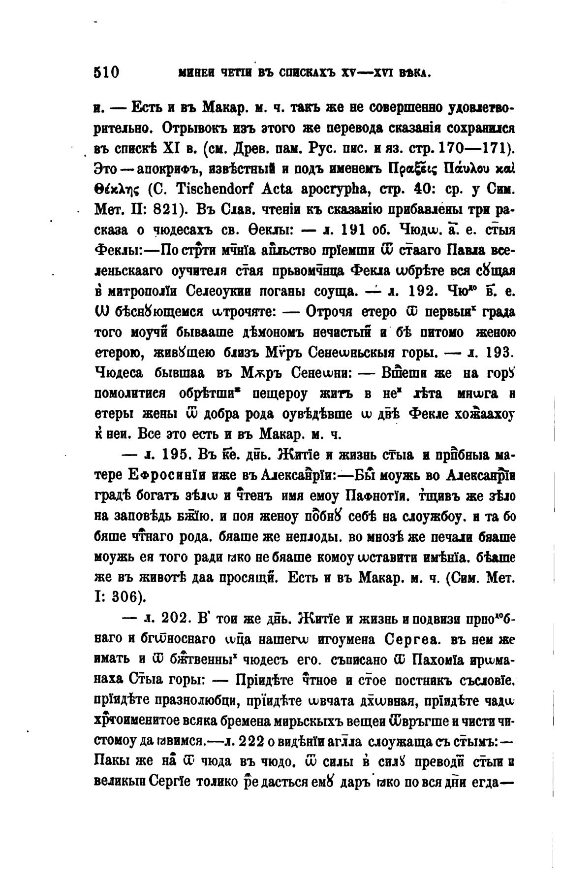 сказа о чюдесахъ св. еекљи: — л. 191 об. Чюдш. Е. е.