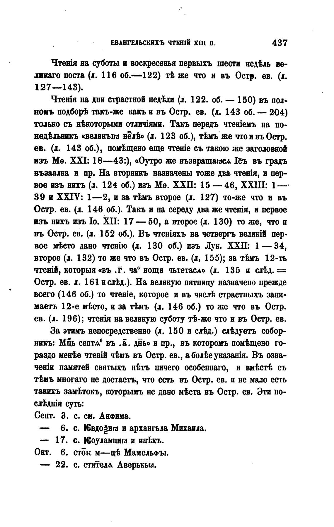 ев. ф. 196); чтенјя на великую суботу Жже что и въ Остр. ев.