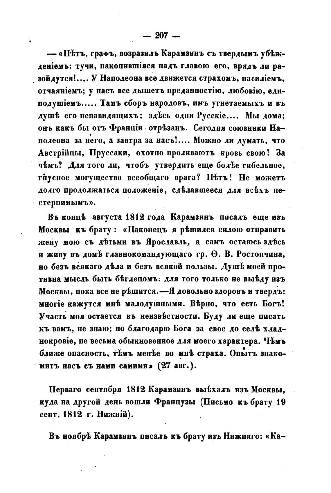 Перваго сентября 1812 Карамзинъ вьњхалъ изъ Москвы,