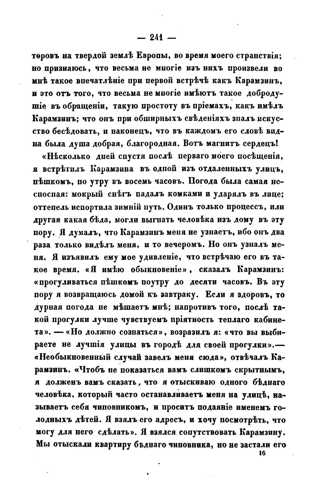 я встревтилъ Карамзина въ одной изъ отдаленныхъ улицъ,