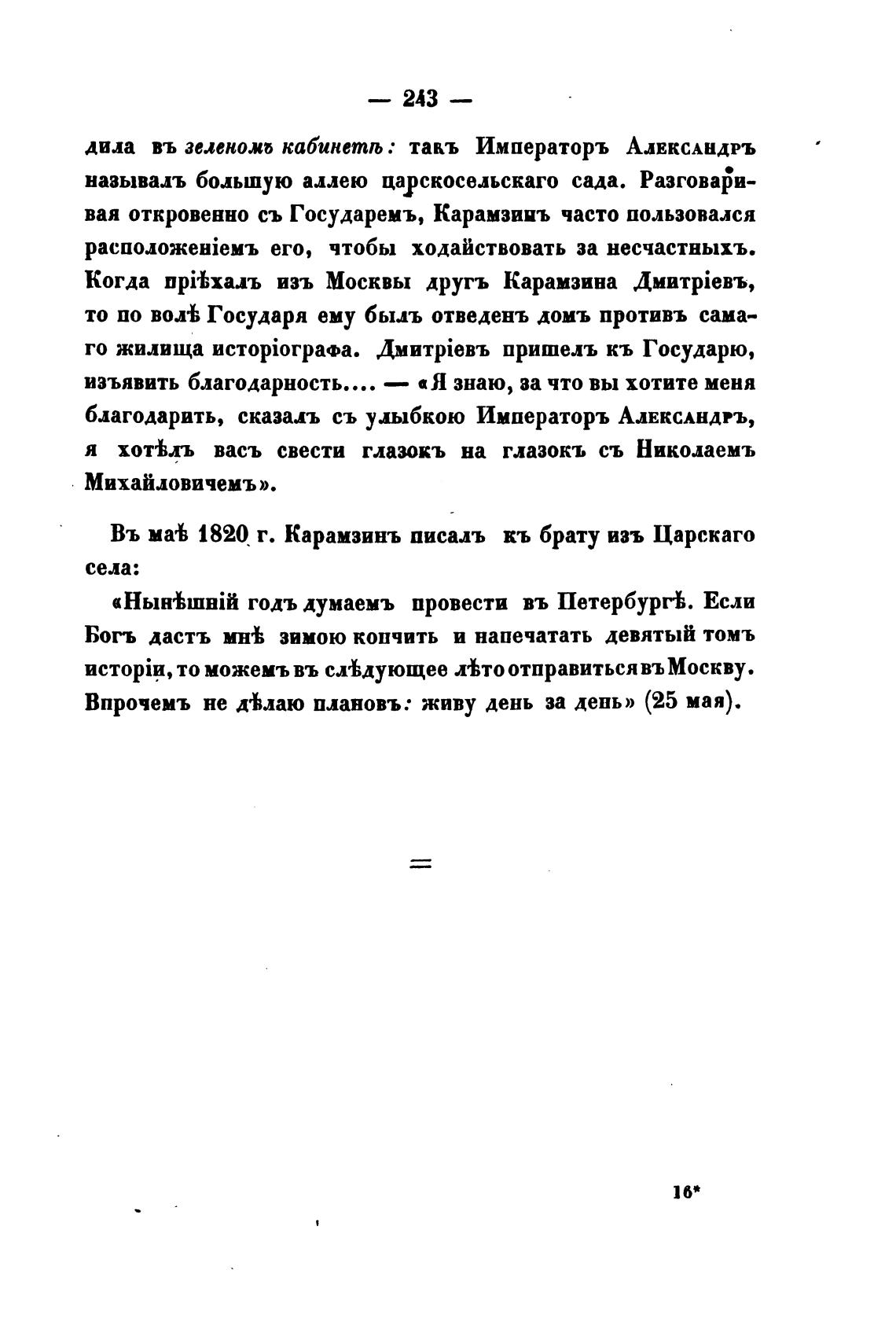Въ 1820 г. Карамзинъ писалъ кь брату изъ Царскаго