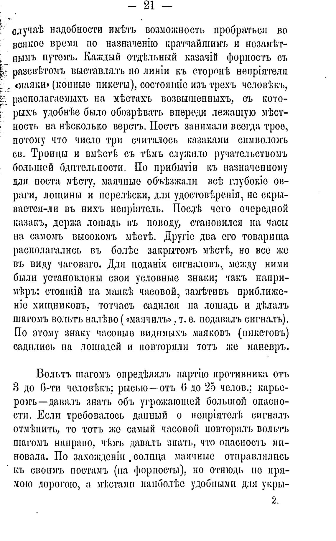«маяки» (конные пикеты), состоянйе изъ тре.хъ