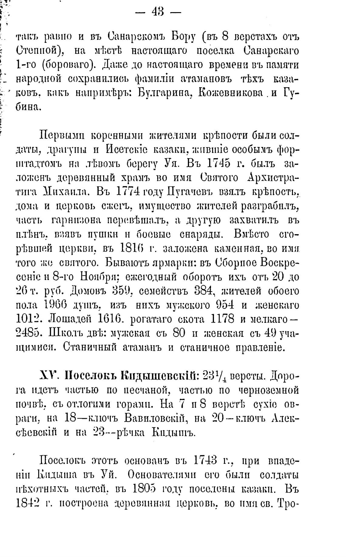 тига Михаила. Въ 1774 году Пугачевъ взялъ