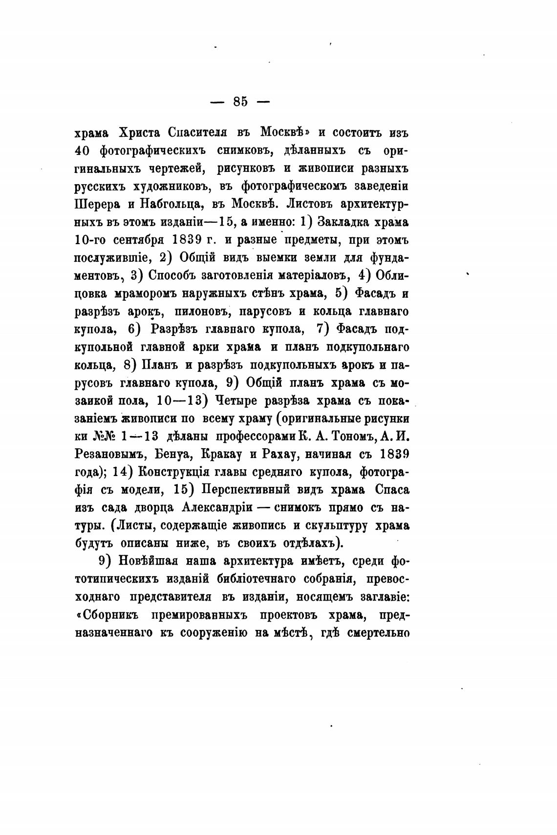 русовъ главнаго купола, 9) планъ храма съ мо-