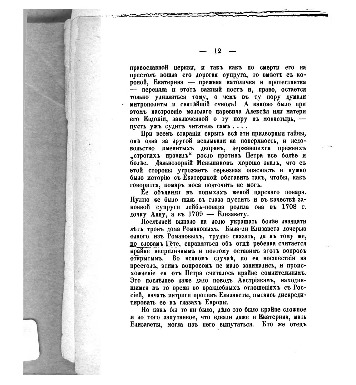 птъ тронь дома Романовыхъ. Была-ли Елизавета дочерью