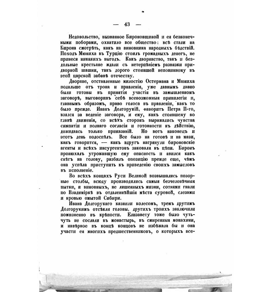 Ивана Долгорукаго казнили колесомъ, тремъ другимъ