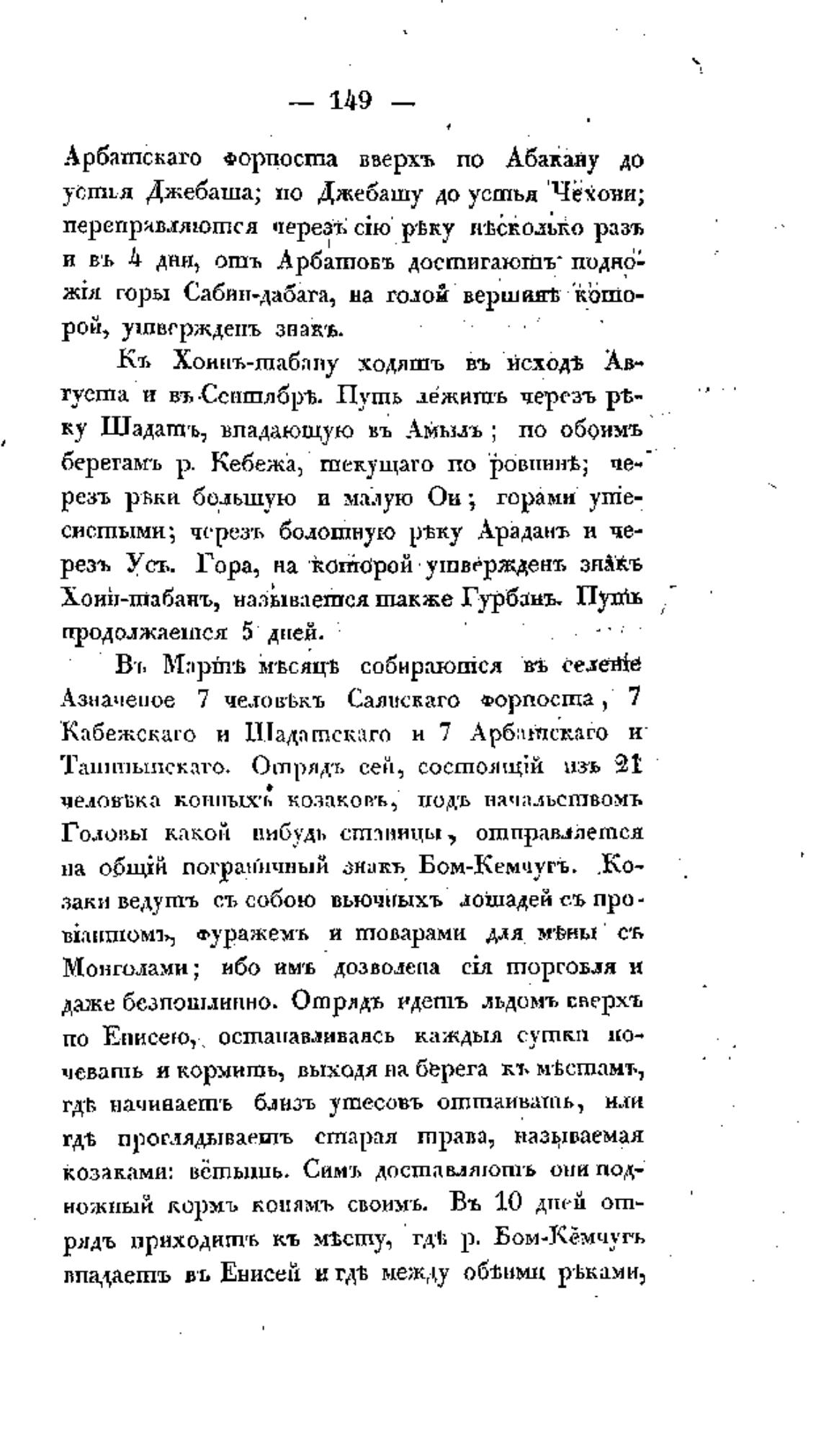 Арбатскаго Форпоста вверхть по Абакану до