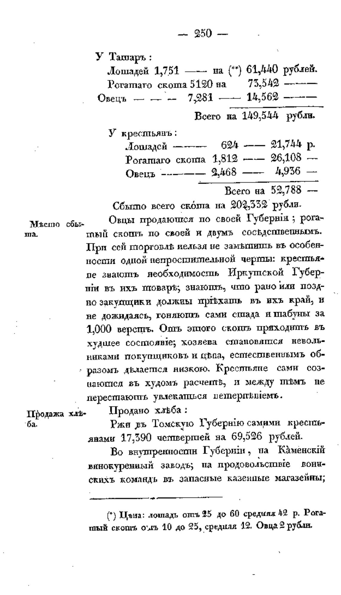 тый сковдъ оыъ 10 до 25, среди,тя 19, Овца 2 рубдн,