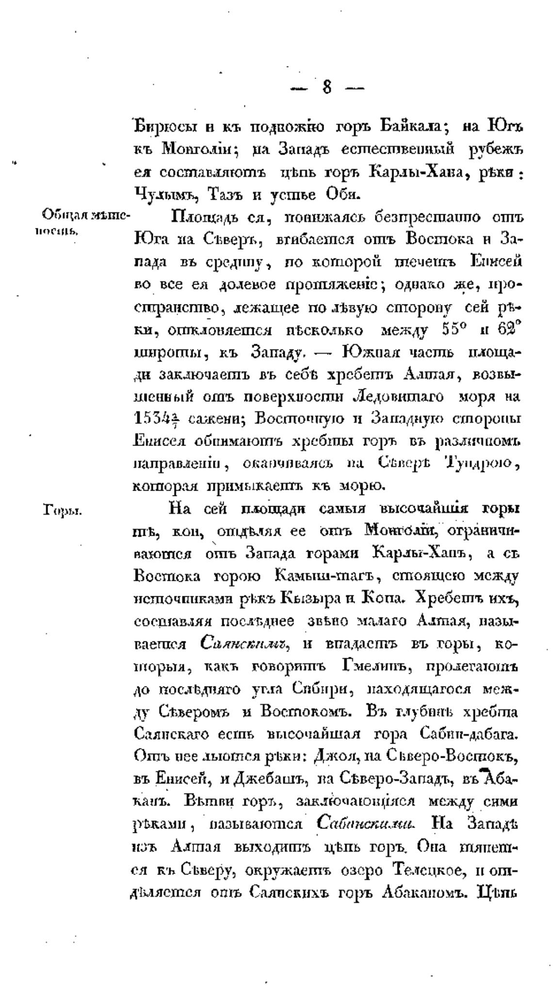 Енисел обпимаюшъ хребты горь въ иомт,
