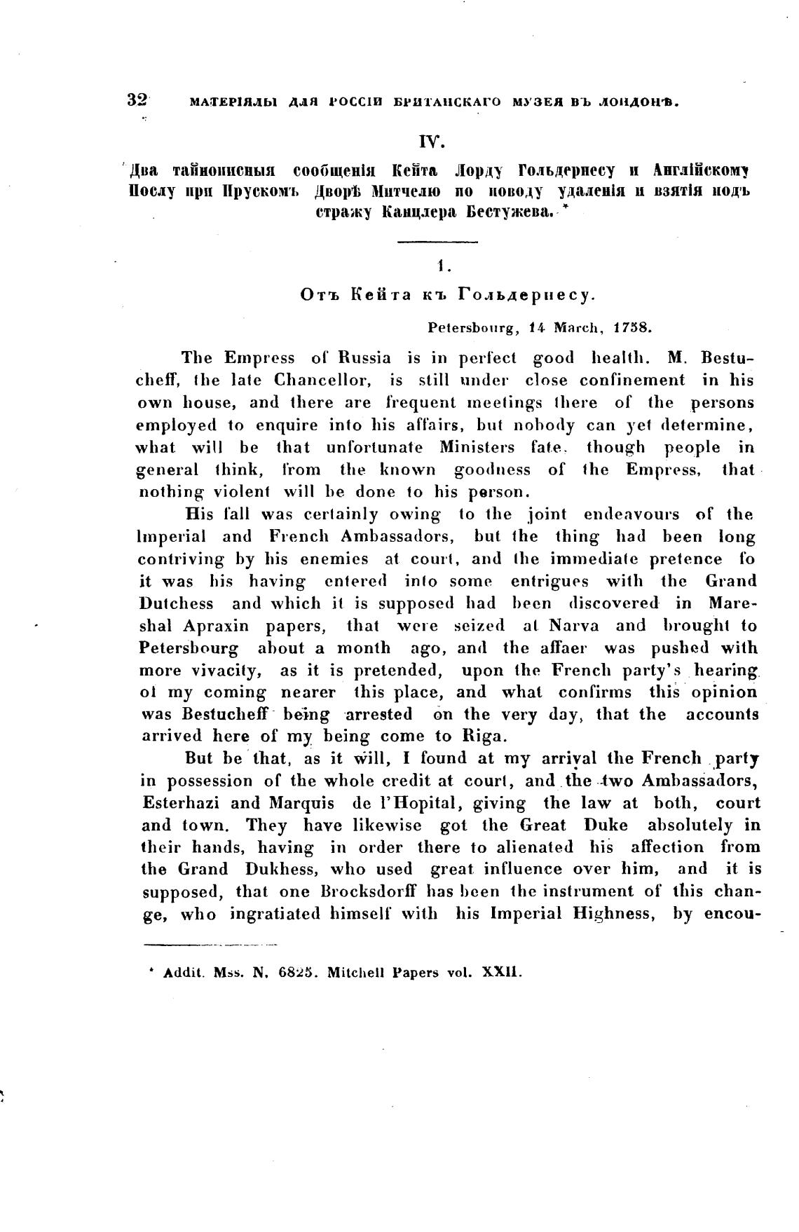 Addit. Mss. N. 6825. Mitchen Papers vol. ХХИ.