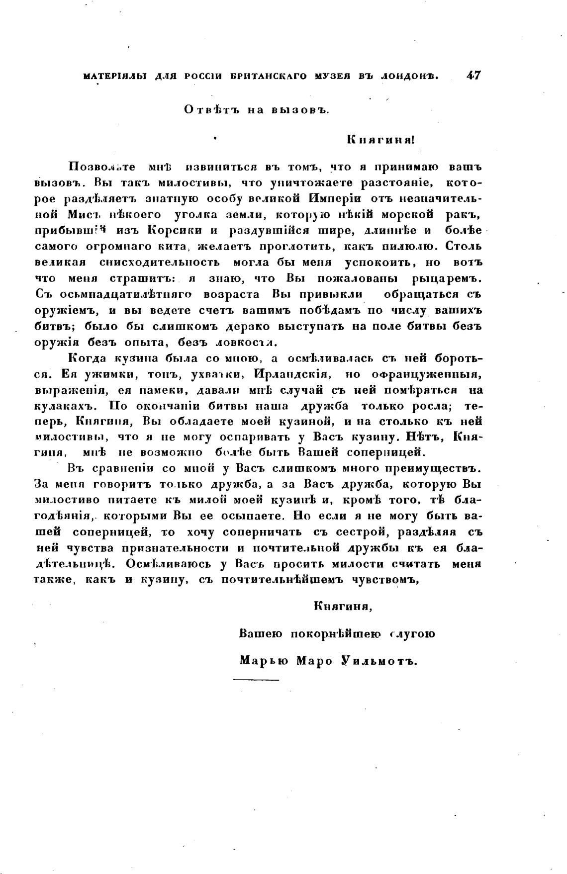 ней чувства признательности и почтительной дружбы кь ея бла-