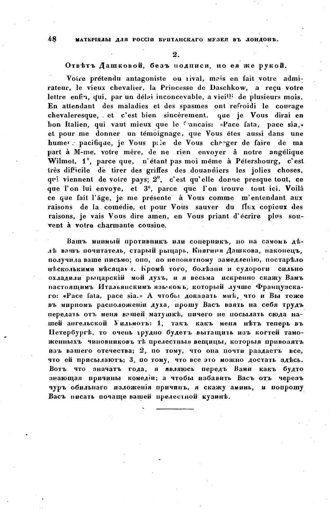 ОТВ'Ьтъ Дашковой, безъ подписи, но ея же рукой.