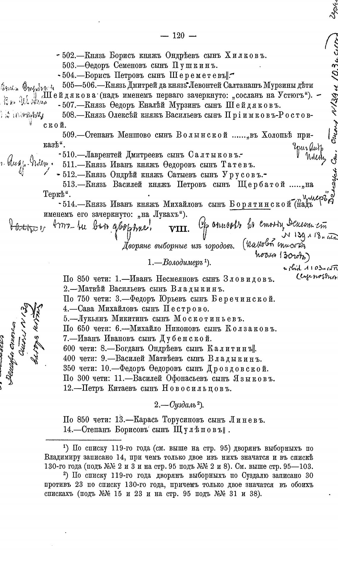 1) По списку 119-го года (см. выше на стр. 95) дворянъ выборныхъ по